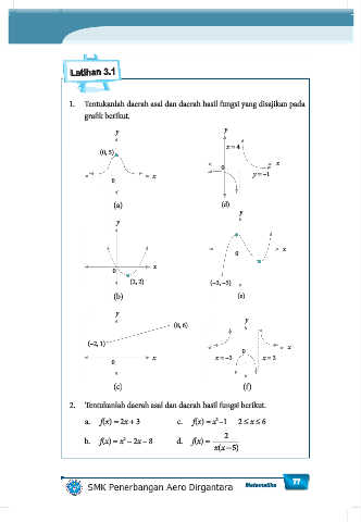 1. Tentukanlah daerah asal dan daerah hasil fungsi yang disajikan pada