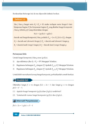 daerah asal fungsi komposisi f dan g adalah D = {x∈D | f(x)∈D }, dengan