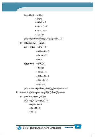 Jadi, rumus fungsi komposisi ((gf)h)(x) = 16x – 23.