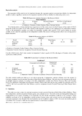of multiple regression analysis. According to the table, independent variables likes Product Features, Place and Customer