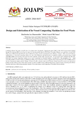 implementation of food waste composting before or by year 2019, Polytechnic Kuching Sarawak is committed to conduct a pilot project using in-vessel