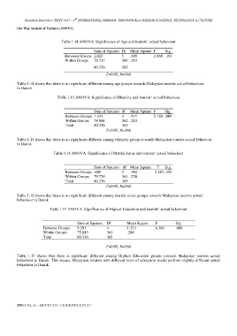 Table 1.15 shows that there is no significant different among ethnicity groups towards Malaysian tourists actual behaviour