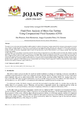 and turbine. This paper describes the analysis of fluid flow in a micro-gas turbine that used an automotive turbocharger as the compressor and the turbine of