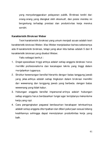 karakteristik birokrasi Weber. Max Weber menjelaskan bahwa sebenarnya