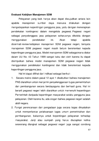 disimpulkan bahwa model manajemen SDM pegawai negeri tidak