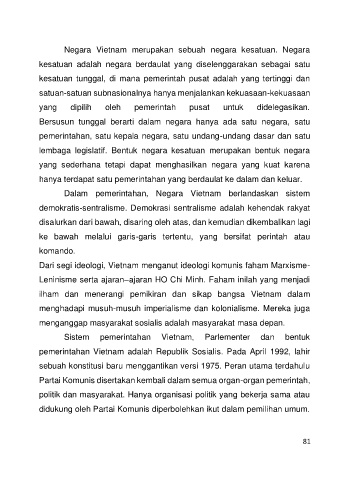 Negara Vietnam merupakan sebuah negara kesatuan. Negara