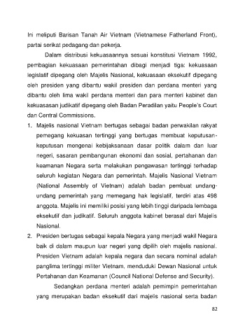 Dalam distribusi kekuasaannya sesuai konstitusi Vietnam 1992,