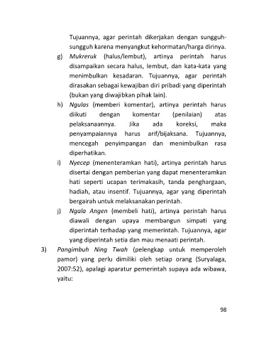 g) Mukreruk (halus/lembut), artinya perintah harus