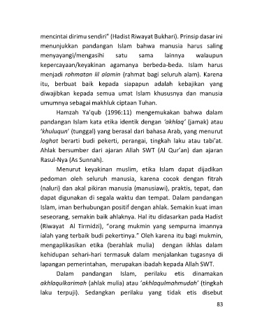 mencintai dirimu sendiri” (Hadist Riwayat Bukhari). Prinsip dasar ini