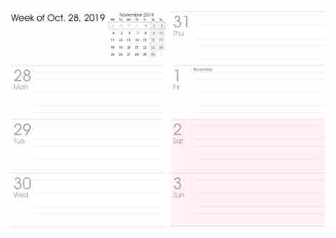 Week of Oct. 28, 2019 November 2019 Mo Tu We Th Fr Sa Su 31 Thu 28 29 30 31 1 45678 11 12 13 14 15 18 19 20 21 22 25 26 27 28 29 9 16 23 30 2 3 10 17 24 1 28 1 Mon Fri 29 Tue 30 Wed November 2Sat 3Sun