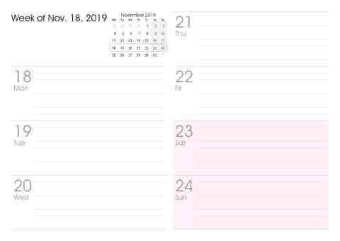 Week of Nov. 18, 2019 November 2019 Mo Tu We Th Fr Sa Su 1 45678 11 12 13 14 15 25 26 27 28 29 21 Thu 22 Fri 28 29 30 31 2 9 16 3 10 17 18 19 20 21 22 23 24 30 1 18 Mon 19 Tue 20 Wed 23 Sat 24 Sun