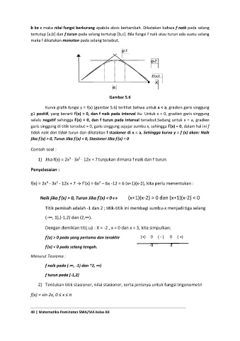 b ke c maka nilai fungsi berkurang apabila absis bertambah. Dikatakan bahwa f naik pada selang