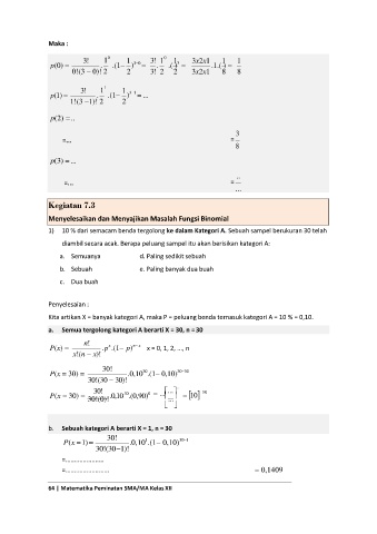 1) 10 % dari semacam benda tergolong ke dalam Kategori A. Sebuah sampel berukuran 30 telah