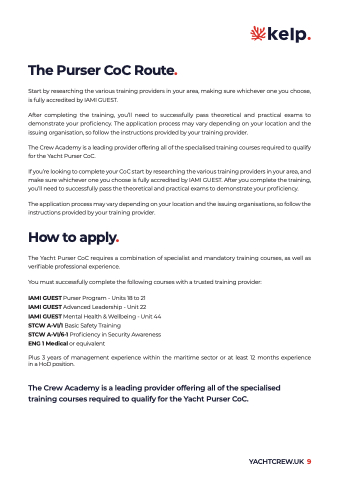 for the Yacht Purser CoC.
