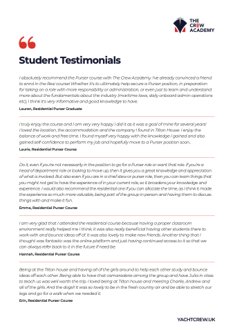 I absolutely recommend the Purser course with The Crew Academy. I've already convinced a friend