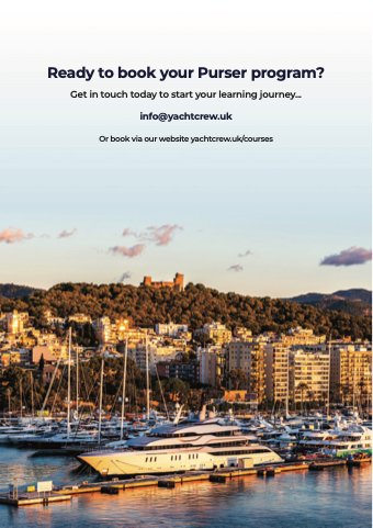 Ready to book your Purser program? Get in touch today to start your learning journey... info@yachtcrew.uk Or book via our website yachtcrew.uk/courses