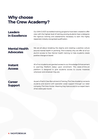 As part of Yacht Crew Recruitment & Training, The Crew Academy connects