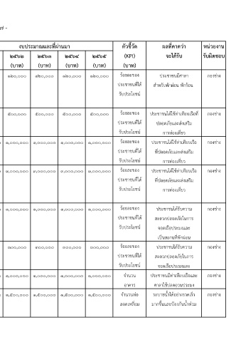 ที่ โครงการ/กิจกรรม วัตถุประสงค (ผลผลิตของโครงการ) ๒๕๖๑ ๒๕๖๒ ๒๕๖๓ ๒๕๖๔ ๒๕๖๕ (KPI) จะไดรับ รับผิดชอบ