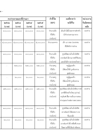 ๑๐ กอสรางหองน้ํา เพื่อใหครูผูดูแลเด็ก กอสรางหองน้ํา - - ๖๐,๐๐๐ ๖๐,๐๐๐ ๖๐,๐๐๐ จํานวนครู ครูผูดูแลเด็ก กองชาง