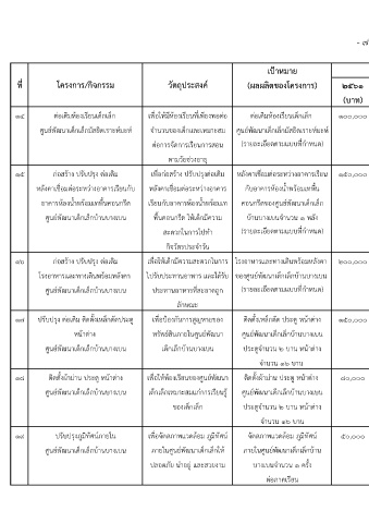 ๑๗ ปรับปรุง ตอเติม ติดตั้งเหล็กดัดประตู เพื่อปองกันการสูญหายของ ติดตั้งเหล็กดัด ประตู หนาตาง ๑๕๐,๐๐๐ ๑๕๐,๐๐๐ ๑๕๐,๐๐๐ ๑๕๐,๐๐๐ ๑๕๐,๐๐๐ จํานวนเด็ก ทรัพยสินภายในศูนยพัฒนาเด็ก กองชาง