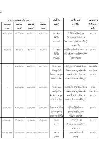 ที่ โครงการ/กิจกรรม วัตถุประสงค (ผลผลิตของโครงการ) ๒๕๖๑ ๒๕๖๒ ๒๕๖๓ ๒๕๖๔ ๒๕๖๕ (KPI) จะไดรับ รับผิดชอบ