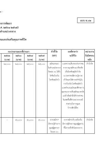 ที่ โครงการ/กิจกรรม วัตถุประสงค (ผลผลิตของโครงการ) ๒๕๖๑ ๒๕๖๒ ๒๕๖๓ ๒๕๖๔ ๒๕๖๕ (KPI) จะไดรับ รับผิดชอบ