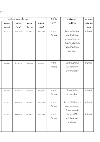 ที่ โครงการ/กิจกรรม วัตถุประสงค (ผลผลิตของโครงการ) ๒๕๖๑ ๒๕๖๒ ๒๕๖๓ ๒๕๖๔ ๒๕๖๕ (KPI) จะไดรับ รับผิดชอบ