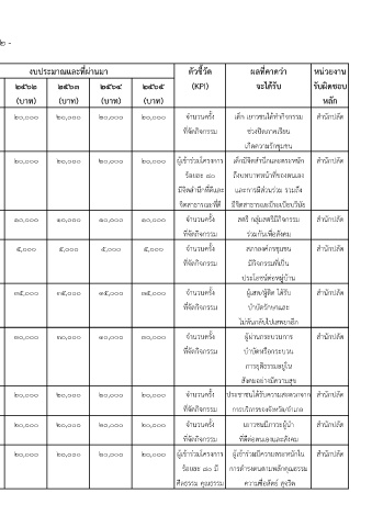 ที่ โครงการ/กิจกรรม วัตถุประสงค (ผลผลิตของโครงการ) ๒๕๖๑ ๒๕๖๒ ๒๕๖๓ ๒๕๖๔ ๒๕๖๕ (KPI) จะไดรับ รับผิดชอบ