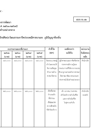 ที่ โครงการ/กิจกรรม วัตถุประสงค (ผลผลิตของโครงการ) ๒๕๖๑ ๒๕๖๒ ๒๕๖๓ ๒๕๖๔ ๒๕๖๕ (KPI) จะไดรับ รับผิดชอบ