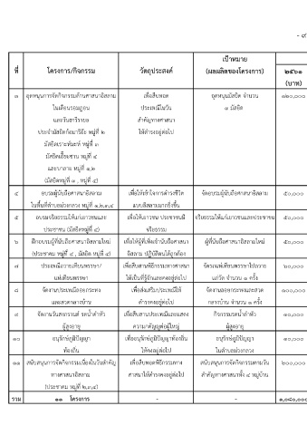 ๘ จัดงานประเพณีลอยกระทง เพื่อสงเสริมประเพณีให จัดงานลอยกระทงและสวด 100,000 100,000 100,000 100,000 100,000 จํานวนครั้ง ประเพณีดํารงคง สํานักปลัด