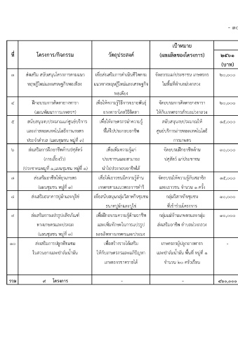 ๙ สงเสริมการแปรรูปผลิตภัณฑ เพื่อฝกอบรมความรูดานอาชีพ กลุมแมบานเกษตรและกลุม 30,000 30,000 30,000 30,000 30,000 จํานวนกลุม เกษตรไดรับความรูและเพิ่ม สํานักปลัด