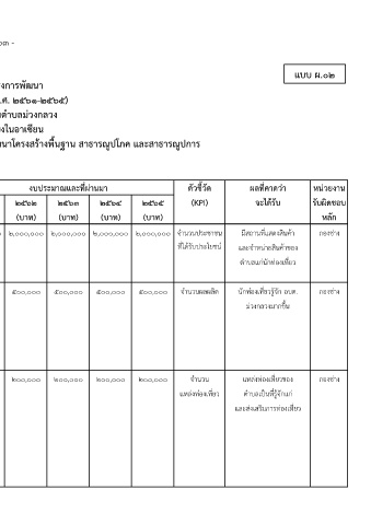 ที่ โครงการ/กิจกรรม วัตถุประสงค (ผลผลิตของโครงการ) ๒๕๖๑ ๒๕๖๒ ๒๕๖๓ ๒๕๖๔ ๒๕๖๕ (KPI) จะไดรับ รับผิดชอบ