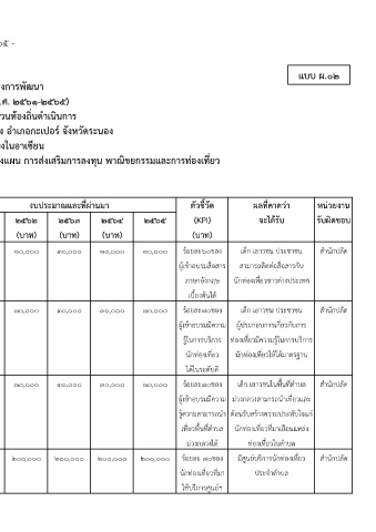 ที่ โครงการ/กิจกรรม วัตถุประสงค (ผลผลิตของโครงการ) ๒๕๖๑ ๒๕๖๒ ๒๕๖๓ ๒๕๖๔ ๒๕๖๕ (KPI) จะไดรับ รับผิดชอบ