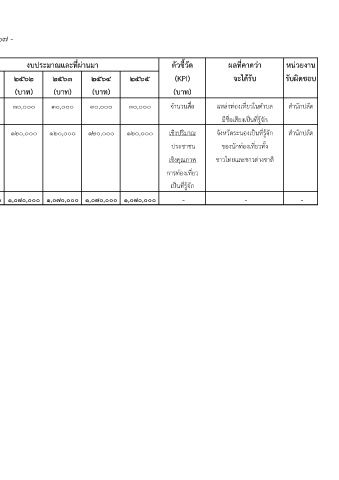 ที่ โครงการ/กิจกรรม วัตถุประสงค (ผลผลิตของโครงการ) ๒๕๖๑ ๒๕๖๒ ๒๕๖๓ ๒๕๖๔ ๒๕๖๕ (KPI) จะไดรับ รับผิดชอบ