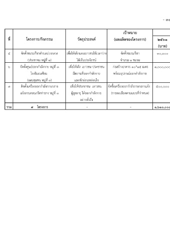 ๖ จัดตั้งศูนยออกกําลังกาย หมูที่ 3 เพื่อใหเด็ก เยาวชน ประชาชน กอสรางอาคาร 10*15 เมตร 1,000,000 1,000,000 1,000,000 1,000,000 1,000,000 จํานวน เด็ก เยาวชน ประชาชน กองชาง