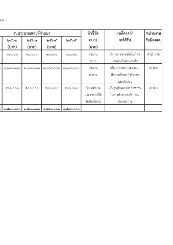 ที่ โครงการ/กิจกรรม วัตถุประสงค (ผลผลิตของโครงการ) ๒๕๖๑ ๒๕๖๒ ๒๕๖๓ ๒๕๖๔ ๒๕๖๕ (KPI) จะไดรับ รับผิดชอบ