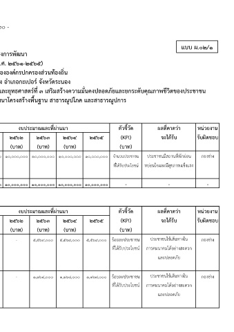 ที่ โครงการ/กิจกรรม วัตถุประสงค (ผลผลิตของโครงการ) ๒๕๖๑ ๒๕๖๒ ๒๕๖๓ ๒๕๖๔ ๒๕๖๕ (KPI) จะไดรับ รับผิดชอบ
