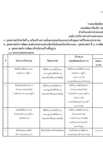 2 ติดตั้งโคมไฟฟาสองสวาง เพื่อใหประชาชนไดมีระบบ ติดตั้งระบบไฟฟาสองสวาง - ๒๒๘,๐๐๐ ๒๒๘,๐๐๐ ๒๒๘,๐๐๐ ๒๒๘,๐๐๐ จํานวนประชาชน ประชาชนไดมีระบบ กองชาง