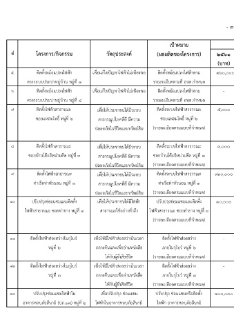 9 ติดตั้งไฟฟาสาธารณะ เพื่อใหประชาชนไดมีระบบ ติดตั้งระบบไฟฟาสาธารณะ ๑๒๐,๐๐๐ ๑๒๐,๐๐๐ ๑๒๐,๐๐๐ ๑๒๐,๐๐๐ ๑๒๐,๐๐๐ จํานวนประชาชน ประชาชนไดมีระบบ กองชาง