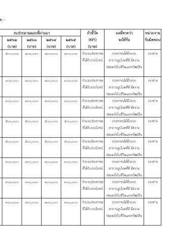 ที่ โครงการ/กิจกรรม วัตถุประสงค (ผลผลิตของโครงการ) ๒๕๖๑ ๒๕๖๒ ๒๕๖๓ ๒๕๖๔ ๒๕๖๕ (KPI) จะไดรับ รับผิดชอบ