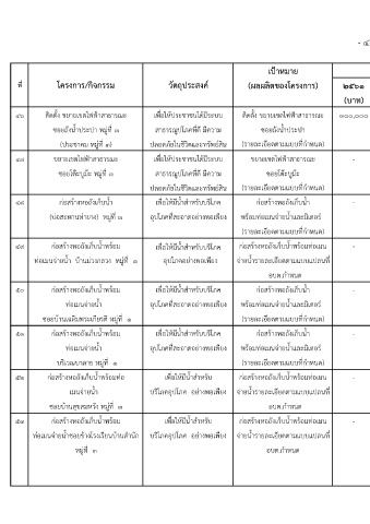 48 กอสรางหอถังเก็บน้ํา เพื่อใหมีน้ําสําหรับบริโภค กอสรางหอถังเก็บน้ํา - 550,000 550,000 550,000 550,000 จํานวนประชาชน ประชาชนมีน้ําอุปโภค กองชาง