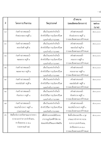 69 กอสรางฝายชะลอน้ํา เพื่อเปนแหลงกักเก็บน้ํา สรางฝายชะลอน้ํา 500,000 500,000 500,000 500,000 500,000 จํานวนครัว มีแหลงน้ําสําหรับ กองชาง
