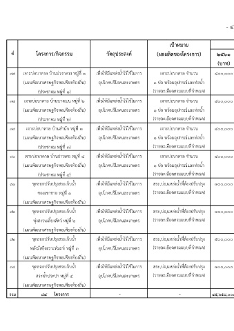 ๘๐ เจาะบอบาดาล บานอาวเคย หมูที่ 4 เพื่อใหมีแหลงน้ําไวใชในการ เจาะบอบาดาล จํานวน 400,000 400,000 400,000 400,000 400,000 จํานวนครัว มีแหลงน้ําไวใชในการ กองชาง