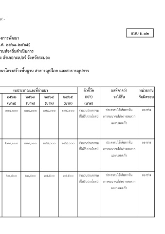 ที่ โครงการ/กิจกรรม วัตถุประสงค (ผลผลิตของโครงการ) ๒๕๖๑ ๒๕๖๒ ๒๕๖๓ ๒๕๖๔ ๒๕๖๕ (KPI) จะไดรับ รับผิดชอบ