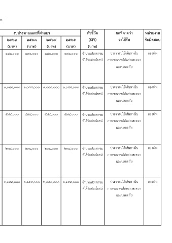 ที่ โครงการ/กิจกรรม วัตถุประสงค (ผลผลิตของโครงการ) ๒๕๖๑ ๒๕๖๒ ๒๕๖๓ ๒๕๖๔ ๒๕๖๕ (KPI) จะไดรับ รับผิดชอบ