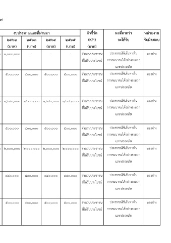ที่ โครงการ/กิจกรรม วัตถุประสงค (ผลผลิตของโครงการ) ๒๕๖๑ ๒๕๖๒ ๒๕๖๓ ๒๕๖๔ ๒๕๖๕ (KPI) จะไดรับ รับผิดชอบ
