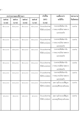 เปาหมาย งบประมาณและที่ผานมา ตัวชี้วัด ผลที่คาดวา หนวยงาน
