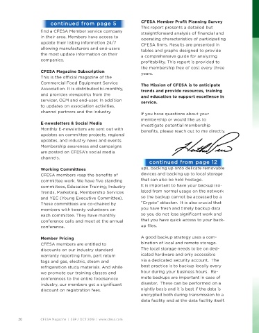 continued from page 5 CFESA Member Profit Planning Survey KCL Tools for Service & Sales