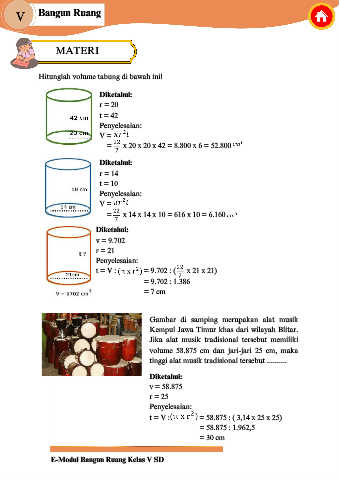 volume 58.875 cm dan jari-jari 25 cm, maka