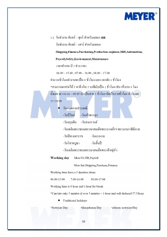 1.2 วันท ำงำน จันทร์ – ศุกร์ ส ำหรับแผนก HR